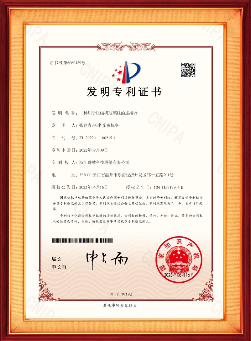 一種用于壓縮機玻璃柱的連接器發明專利證書